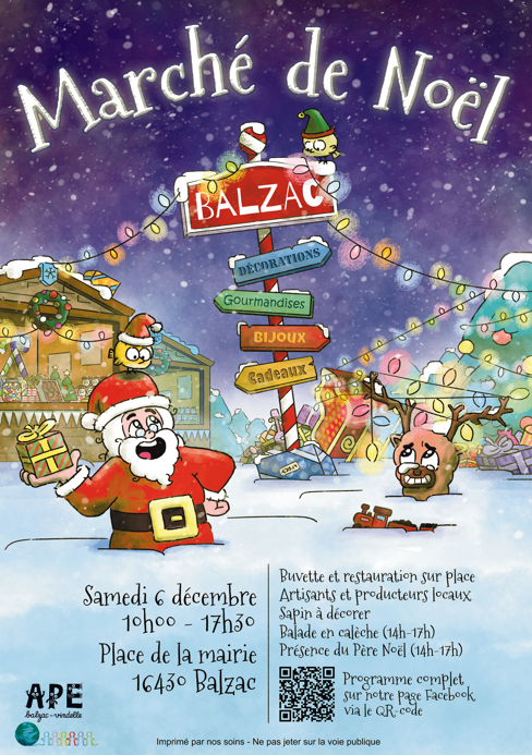 L’Association des Parents d’Élèves de Balzac-Vindelle organise son marché de Noël, ce samedi 6 décembre, place de la mairie à Balzac.
